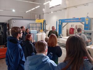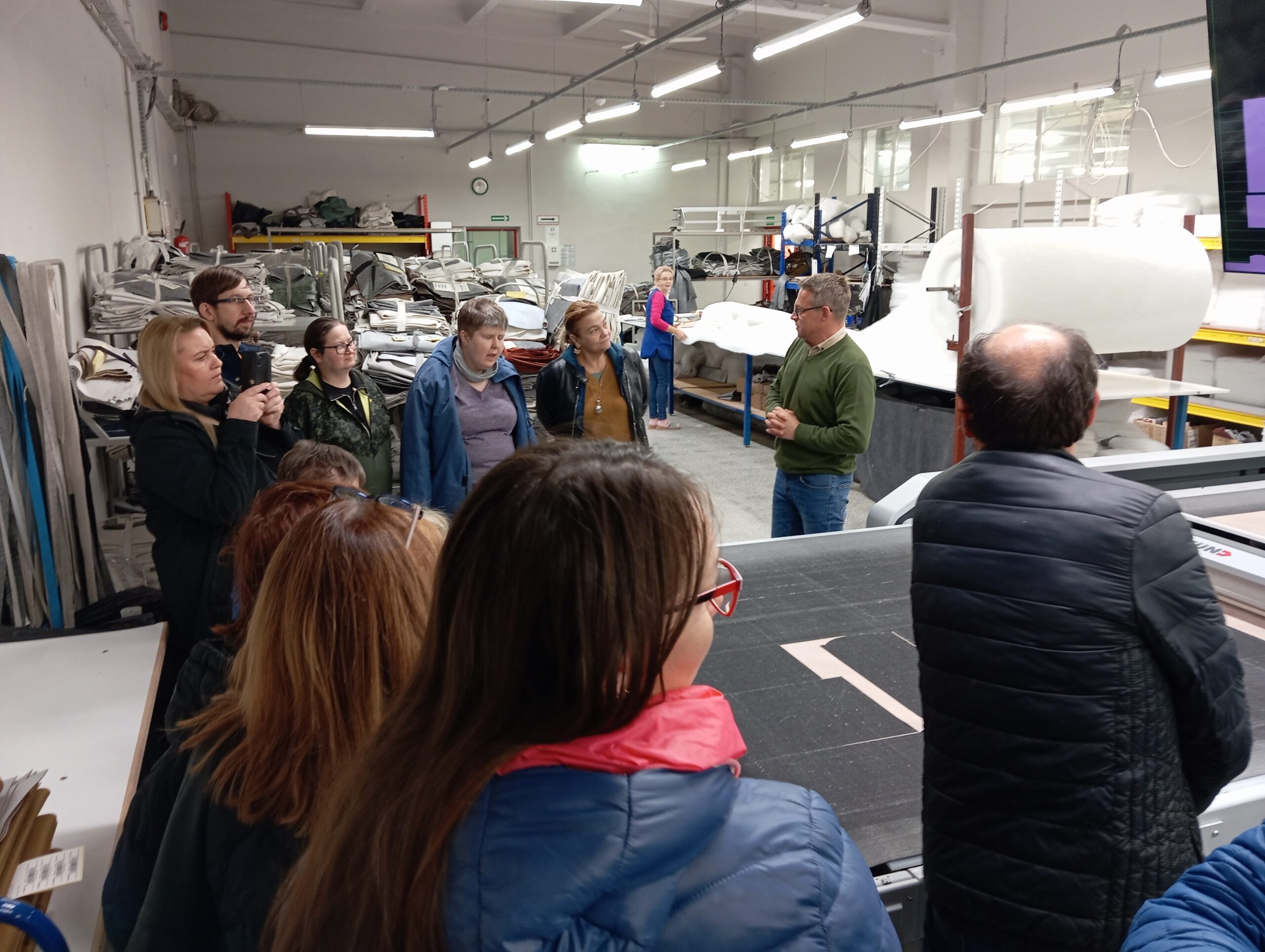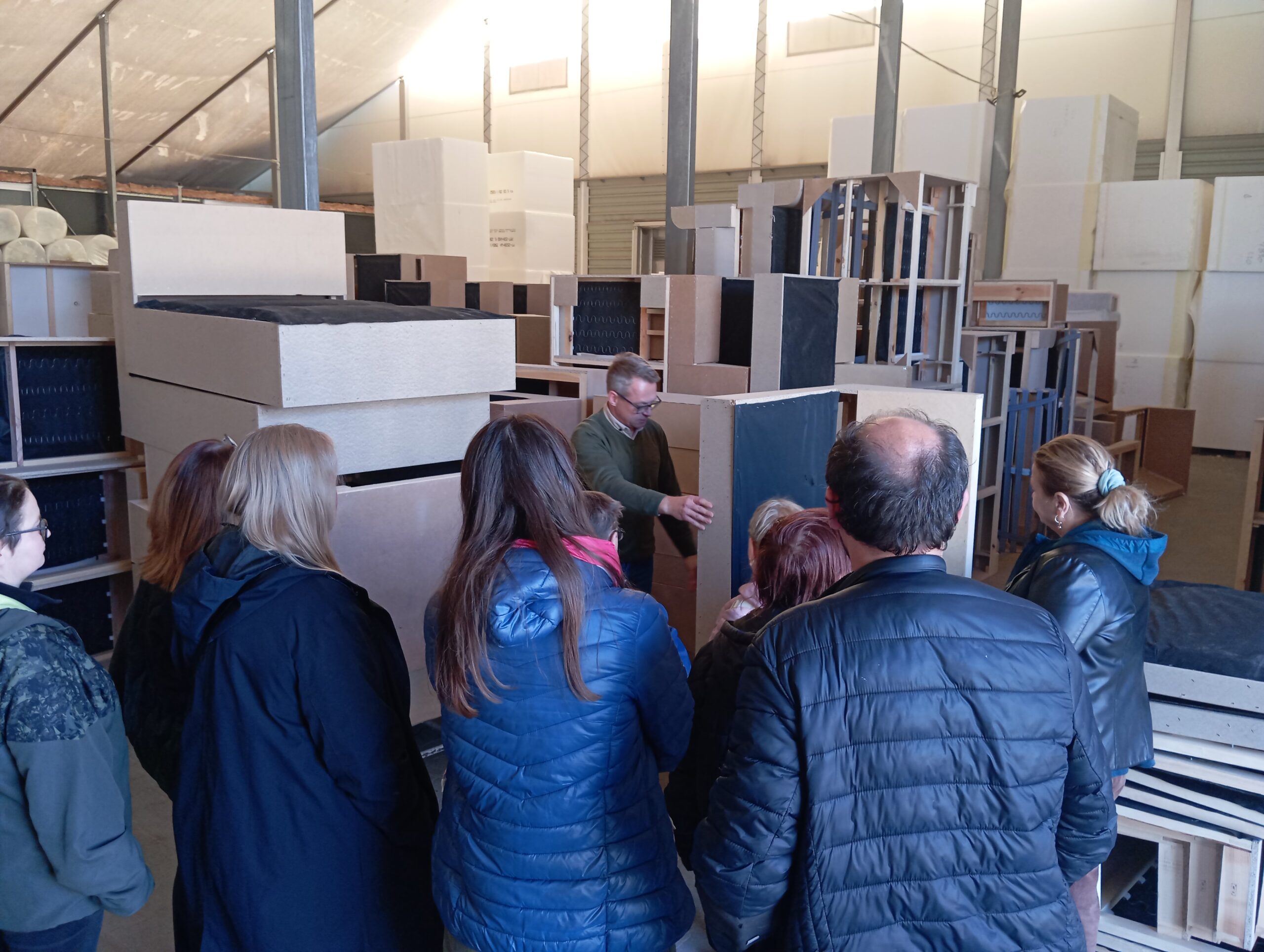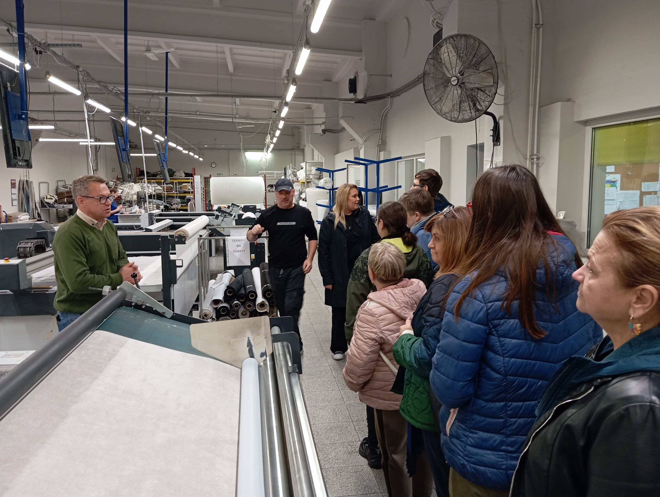 Druga grupa odwiedziła firmę Meble Woźniak (ul. D. Chłapowskiego 35, Ostrów Wielkopolski), gdzie uczestnicy mogli przekonać się, jak wygląda proces tworzenia mebli – od pomysłu i projektu, przez dobór materiałów, aż po montaż gotowych elementów. Po zakładzie oprowadzał nas Pan Sławomir Piekielny, który z pasją i zaangażowaniem opowiadał o swojej pracy. Uczestnicy z zainteresowaniem obserwowali działania fachowców. To spotkanie w firmie Meble Woźniak było dla wszystkich wyjątkową lekcją rzemiosła – pełną inspiracji i wiedzy. ![]()